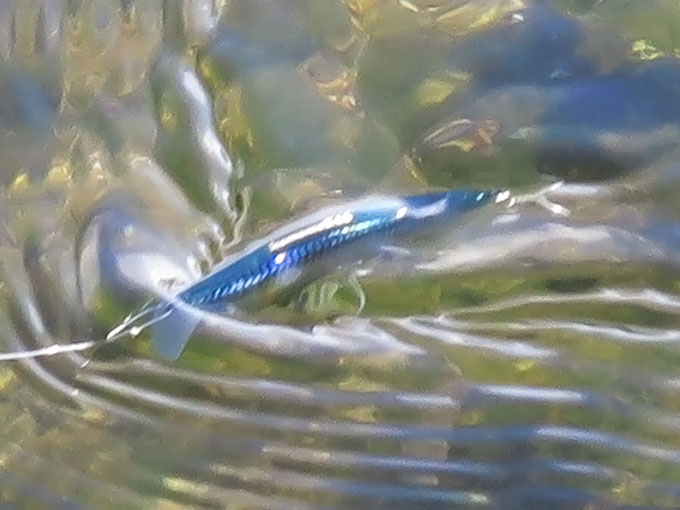 下流側に投げて使うと、アクションが強すぎる感のあるコモモ IIシリーズですが、上流側にキャストして、瀬の上や岸際を引いても面白い。イナッコが同じサイズの時期、河川で使うと楽しそうなルアーだと思います。