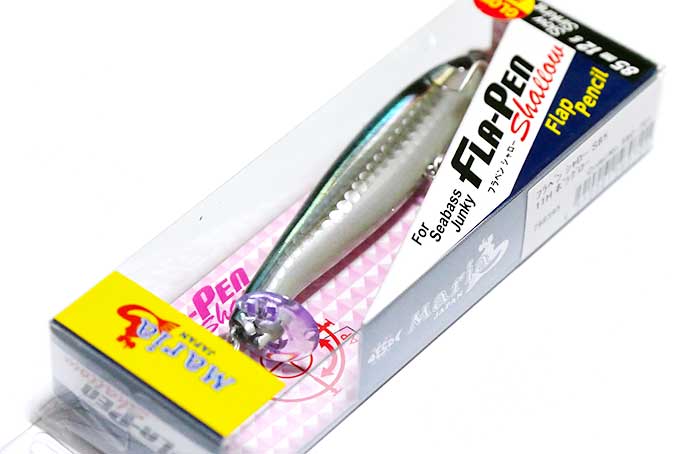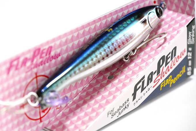 フラペン最大の特徴であるフラップ部分に、水をさらに受けやすく開発したシャロー専用の新形状フラップを採用することで揚力がUP。更にウェイトバランスも見直すことで、ノーマルタイプのフラペンに比べ、河川などの水深の浅いフィールドに対応。表層をじっくりとリトリーブし、より長時間アピールすることが可能になった。「未体験の後方波動」の威力はそのまま継承し、さらにシャローに潜むスレたシーバスに照準を合わせた。