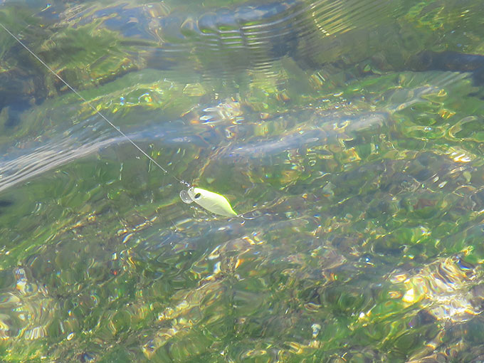 ルアーが見やすいように石畳みを選んでみましたが、まともに泳ぐようになってくると「コレよ!コレ!!」といった感じで、妙に嬉しい気分となりました(笑