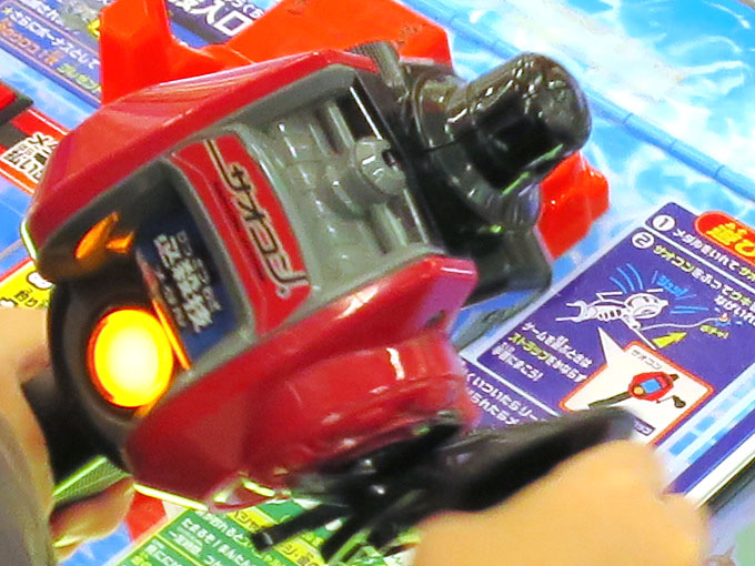 一通りの流れを説明してから、100円を入れてゲーム開始。まずは小さな魚を狙って、手持ちのメダルを増やす作戦に出ますが、中型が食って来たり、小型を掛けたとしても、アジやシシャモっぽい魚にラインをブチ切られます…(汗