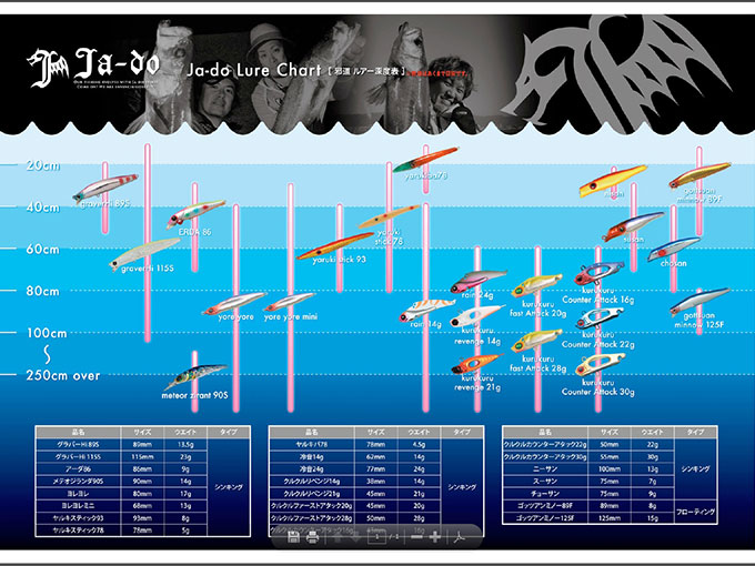 このような感じで、表層を泳いでいるルアーに対しては、ある程度の反応を出せるマージンを確保する事が出来ます。その為、表層周辺に対しては、各社から色んなルアーが販売されており、これを混在させると分かりにくくなります。
