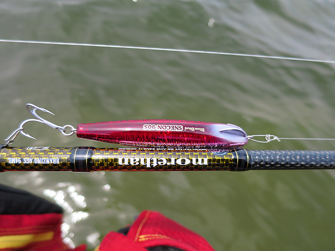 今回は、お気に入りルアーのダウンサイズモデル、スネコン90Sを使ってみました。前項でも書いた通り、振り抜く事ができるので、キャスト感は130Sよりも気持ち良く、一定のレンジを引きやすいルアーになっていると思います。