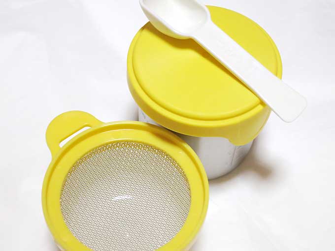 計量スプーンは、裏ごし用のヘラつきです。