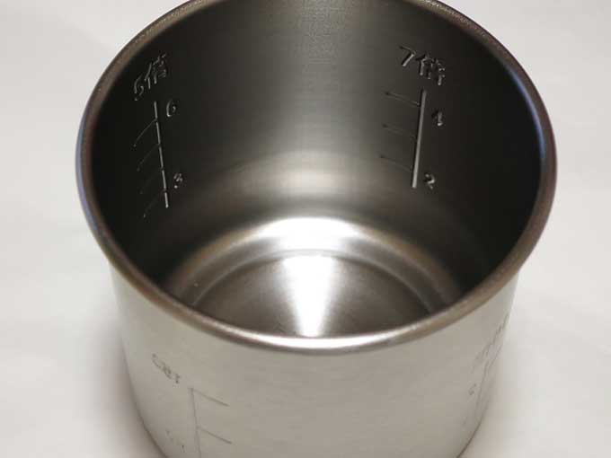 10倍、7倍、5倍がゆの目盛りがついているので、おかゆが簡単に作れます。