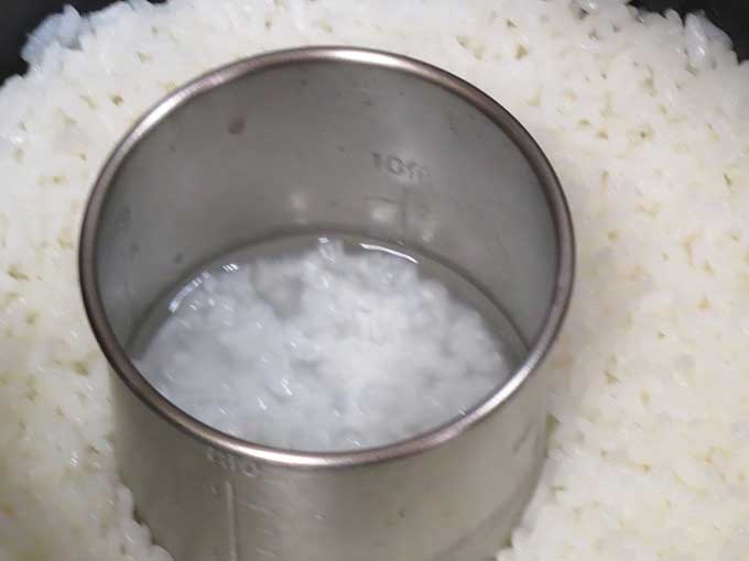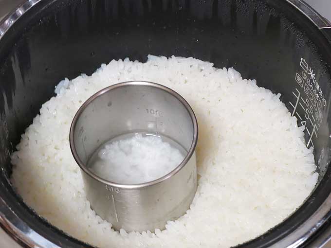 自分たちのご飯を炊くのと一緒に、炊飯器に研いだ米と分量の水をステンレス製ポットを入れて、炊飯器のボタンをポチっと押すだけ。そうすると、自分たちのご飯と一緒に…。
