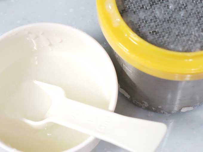 一応、専用スプーンの裏側を使うみたいですが、時間が掛るんで自分は小さいジャモジでガシガシやってます。
