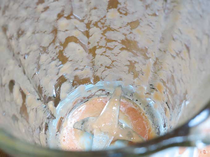 写真は容器に移した後ですが、こんな感じでトロ~ンとするまでミキサーを回せば完成です!!