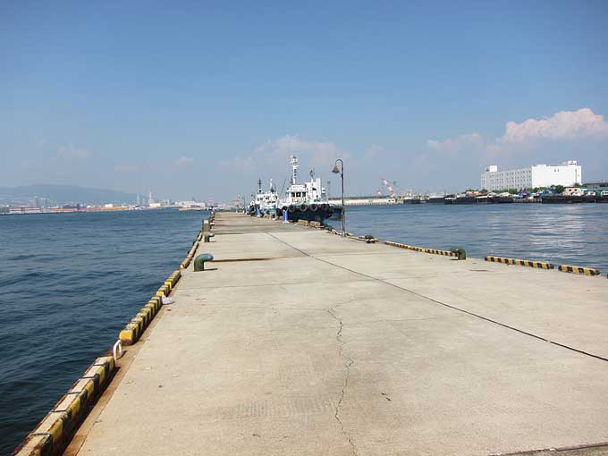 地元の方に話を聞くと係船岸はオーバーハングになっているそうで、この日も落とし込みの方がいらっしゃいました。地元の方の話では、係船岸からみて神戸側に捨て石等が入っているそうで、根魚等の魚影も濃いそうです。
