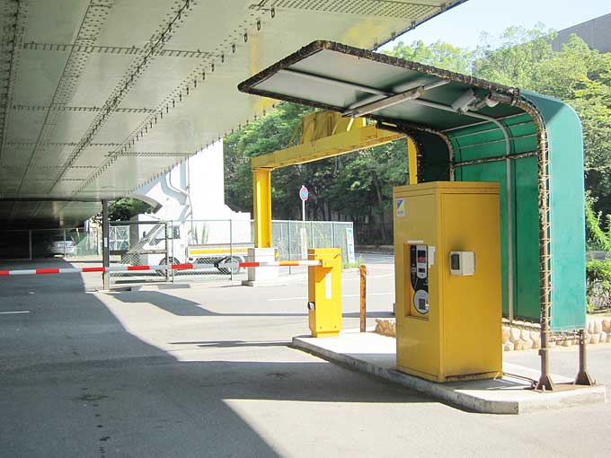 橋の下にはコインパーキングがあります。この駐車場に車を停めて公園を抜けると、すぐに海側のポイントに到着します。