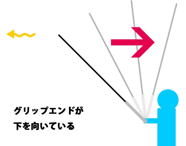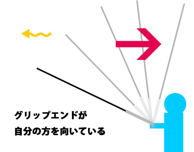 キャスト後に、グリップエンドが自分の方を向いていないのが要因の一つ。