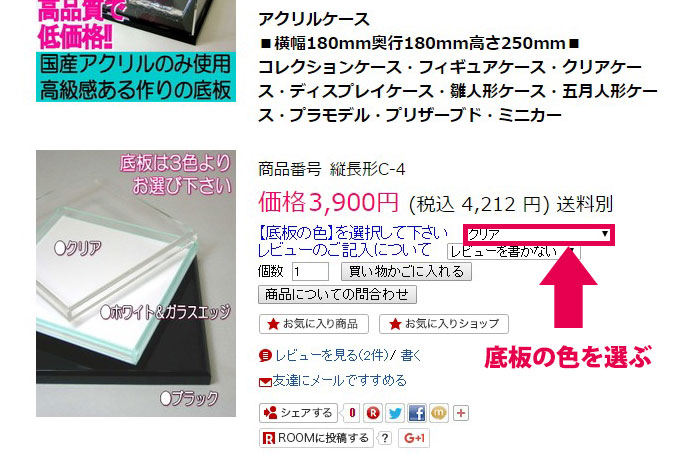 そんな時に見つけたのが、アクリルを専門に扱われている「アクリルスタジオ ルース」さん。コレクションケースのサイズや形状が豊富なうえ、欲しいサイズが無ければサイズ調整を無料で行ってくれるとの事。