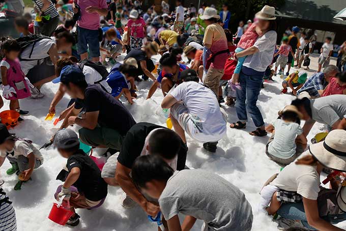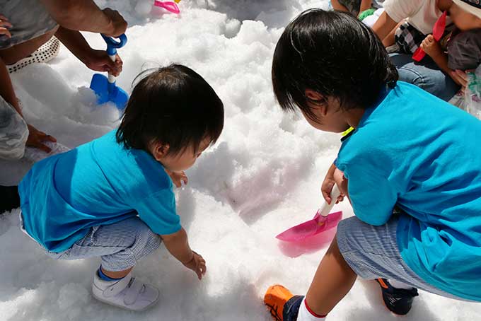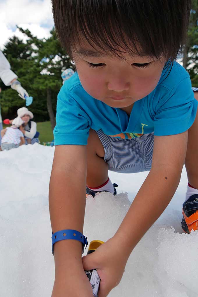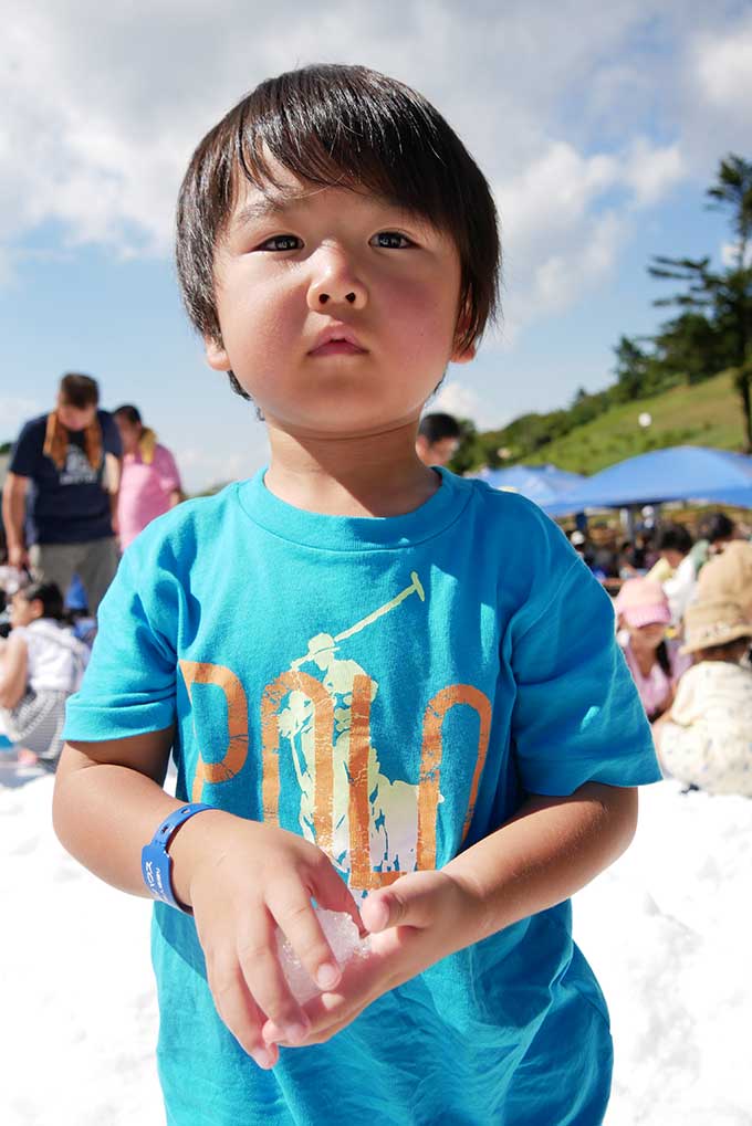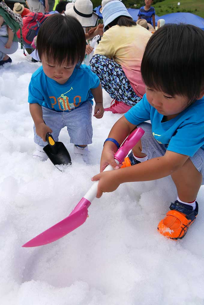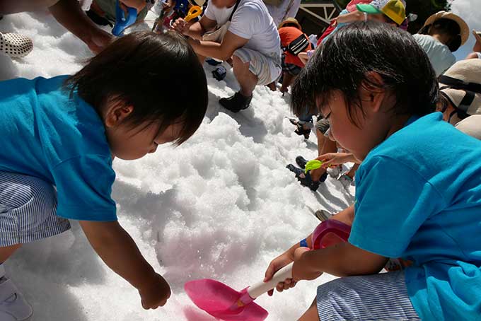 随分と歴史のあるイベントで、今年で38回目となる六甲山の「真夏の雪まつり」。雪の広場の中に埋められた、おもちゃや文房具、雑貨などを探しだす「宝探しゲーム」ですが、開始直後の数分は、小さなお子様専用の幼児タイムとなっています。