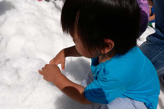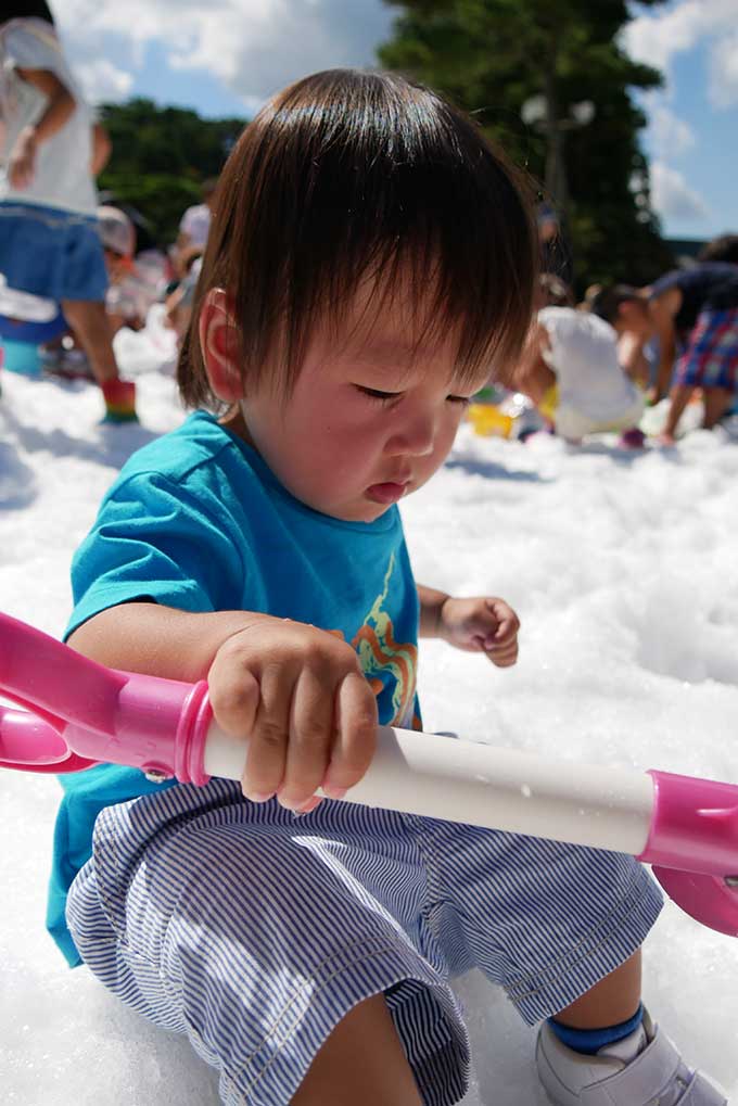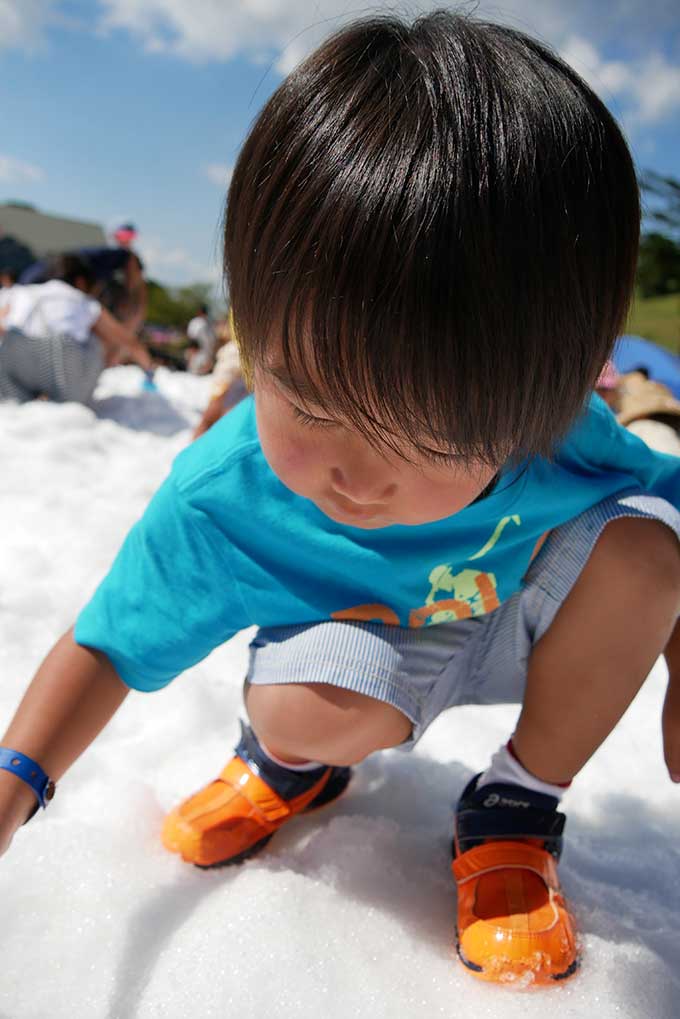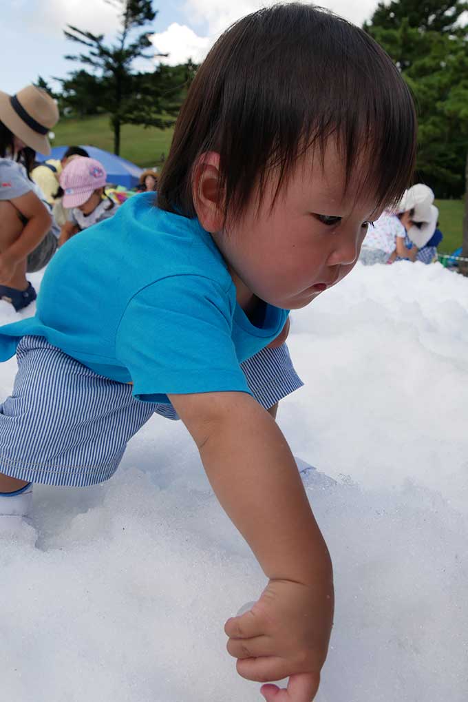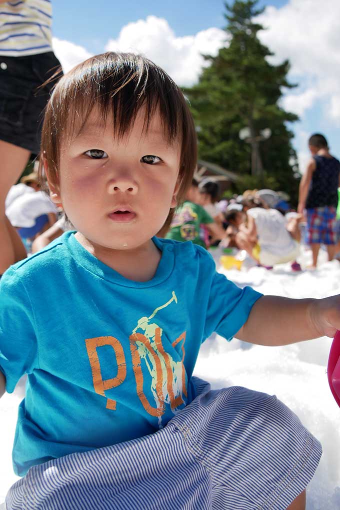 随分と歴史のあるイベントで、今年で38回目となる六甲山の「真夏の雪まつり」。雪の広場の中に埋められた、おもちゃや文房具、雑貨などを探しだす「宝探しゲーム」ですが、開始直後の数分は、小さなお子様専用の幼児タイムとなっています。