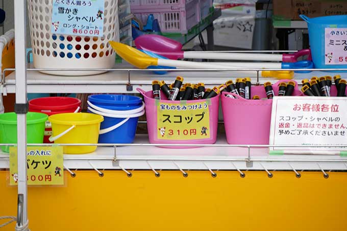 宝探しに使える道具は、プラスチック製に限られているので、金属のスコップでは無く、プラスチック製のスコップを準備しておきます。
