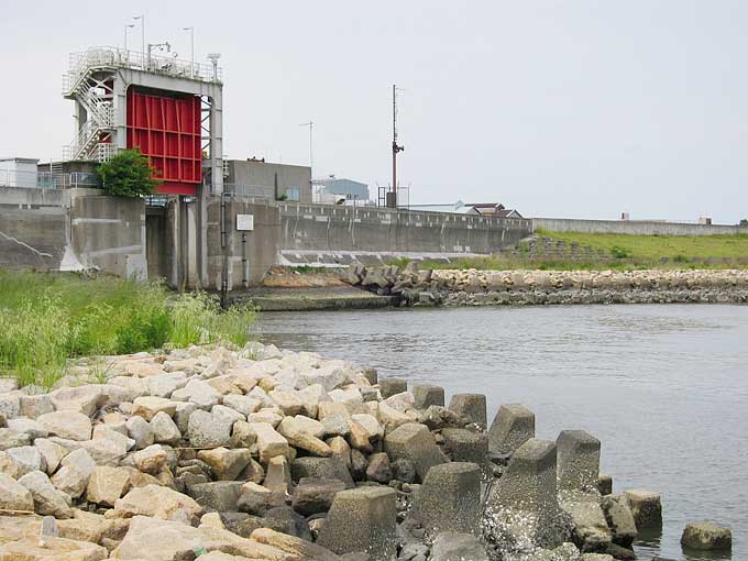 水門からの流れ込み付近にはヨレができていて、いかにもといった雰囲気です。