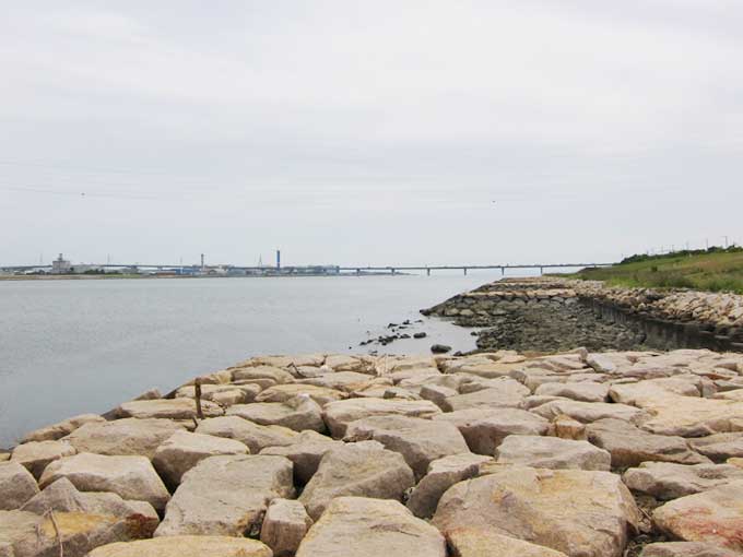 次に予想はしていましたが、河口の端までは歩いて又は自転車でしかアクセス不可との事。ここから見る限りでも意外と距離があります。
