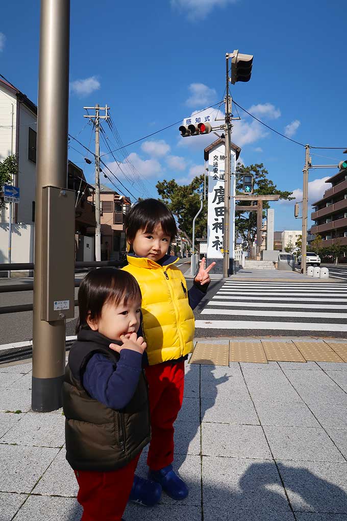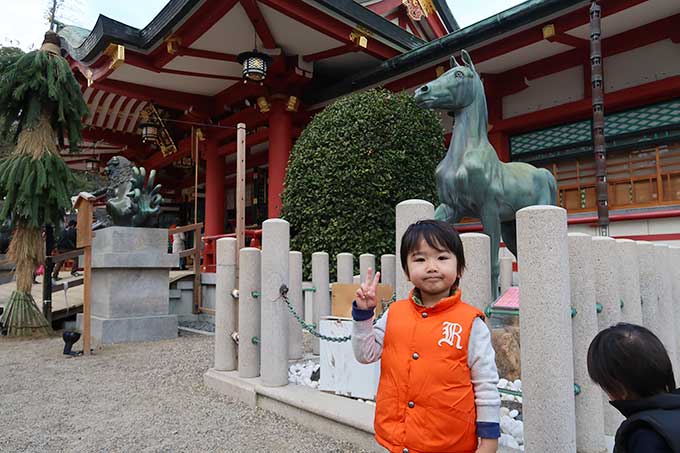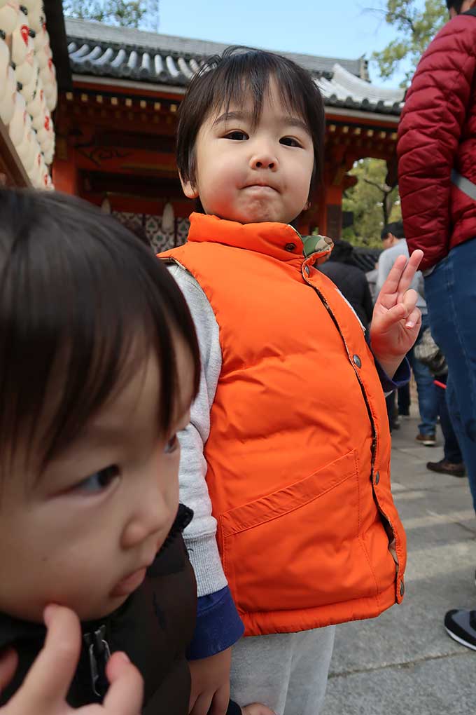 個人的なお目当てとして、美味しいベビーカステラを買いたかったのですが、参道は混雑しているうえ本命の三宝屋は長蛇の列。さすがに並ぶ気にはならなかったので、子供達の手を取りながら、寄り道せず本殿を目指しました。