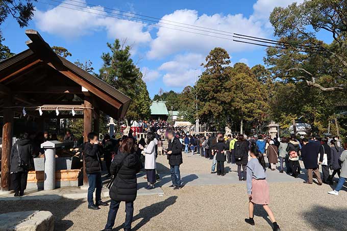 参拝は長蛇の列になっており、本殿から手水舎を超えてツツジ群落まで、ガッツリと並んでいました。この行列を見て、さすがに並ぶモチベーションは無かったので、昨年返せなかったお守りを返納して廣田神社を後に。