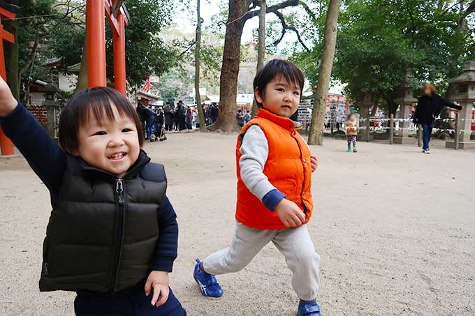 2014年の元日に、「坊っちゃんと二人で歩いて行った廣田神社」に決定。その時の坊っちゃんと、現在の次男君が同じような年齢ですが、抱っこしろとも言わず黙々と歩いてました。