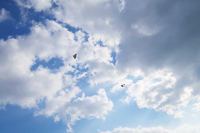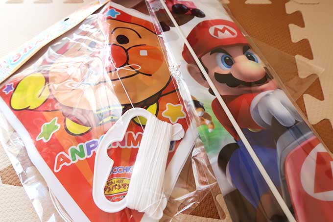 次に、凧揚げは初チャレンジとなる次男君のアンパンマンを準備。三連になっているので、若干扱い難いですが、これまた風を掴んでスルスルと上昇して行きました。