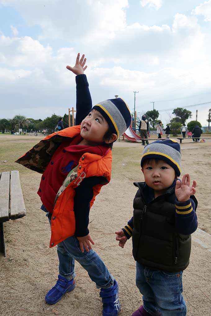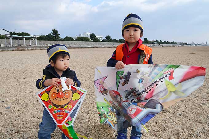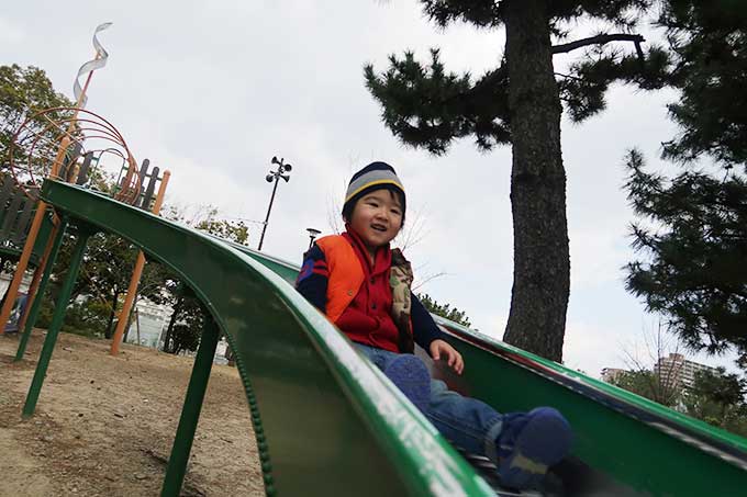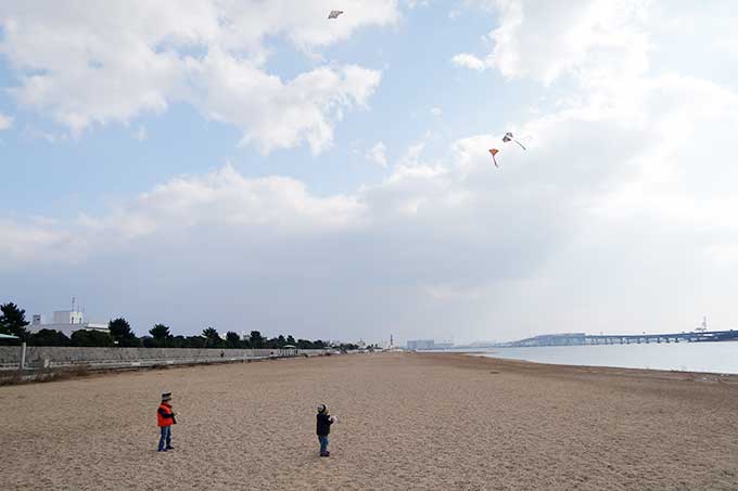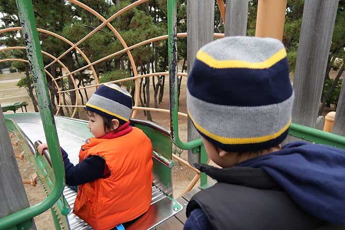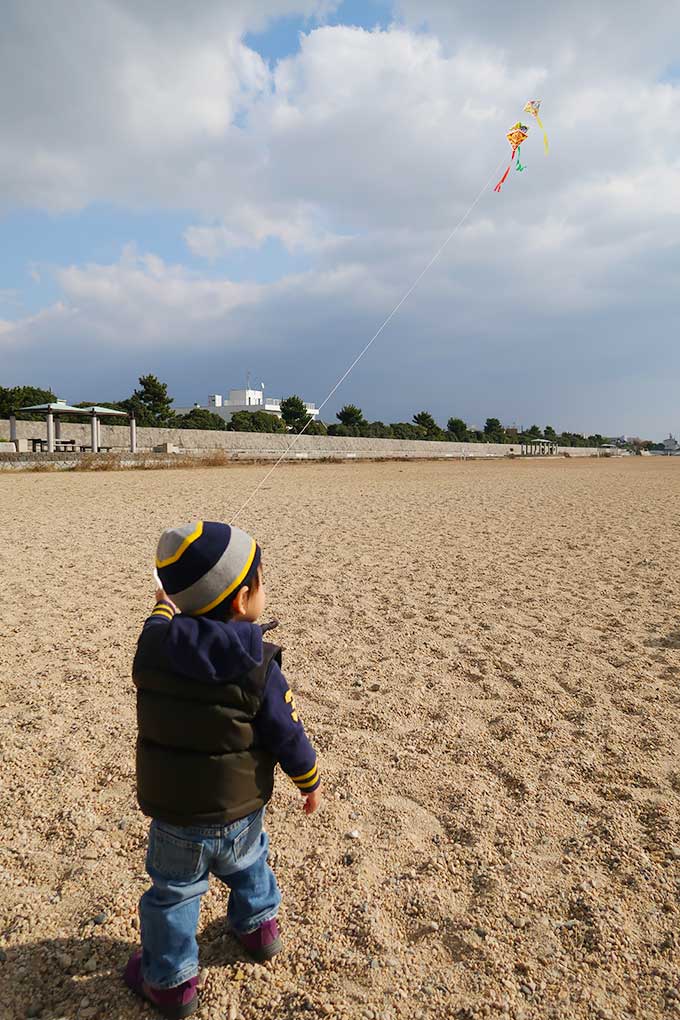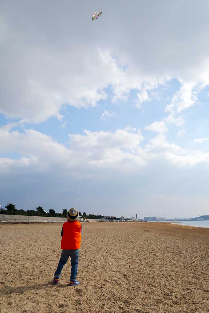 向かったのは「長いローラー滑り台がある甲子園浜海浜公園」です。本来であれば、年末に滑り台で遊ぶ約束でしたが、坊っちゃんの発熱によって延期となっていたので、凧揚げと一緒に公園でも遊べる甲子園浜海浜公園をチョイス。