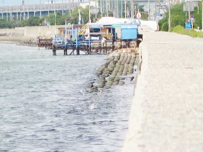 ここは、海面までの高さがあり、タモが必須となります。これを少し下ると「尼崎釣り公園」があります。