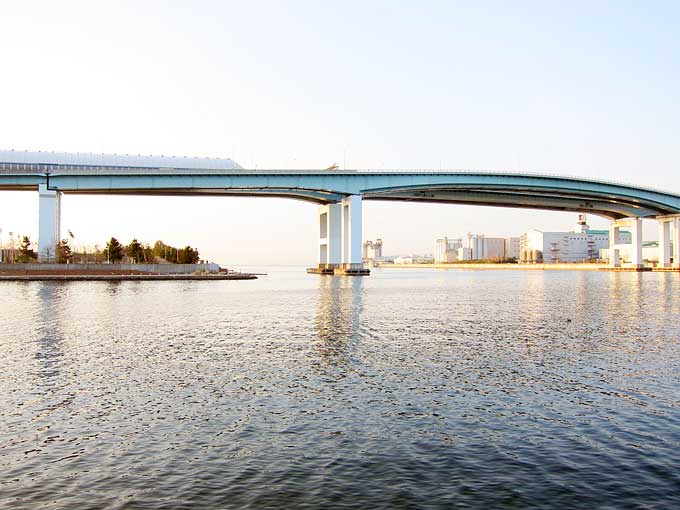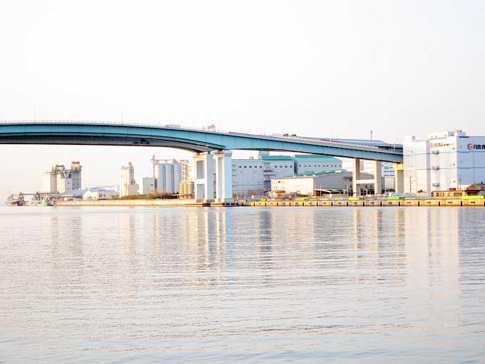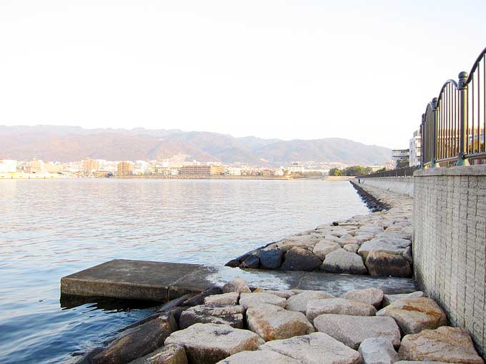 芦屋水道西寄り北側付近から対岸を眺望。深江浜の東面が見えます。