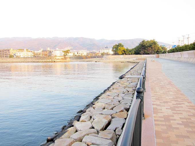 写真では分かりにくいですが、柵から石畳みにかけては2m弱の段差があります。石畳みからのキャスト時には背後に注意を払ってキャストする必要があります。(柵や歩道を歩いておられる方に注意)