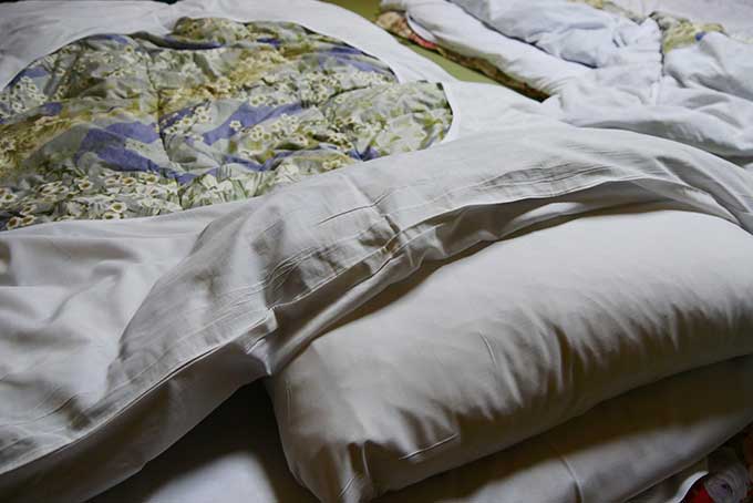 坊っちゃんと二人で温泉を満喫した後は、自販機にて冷たい飲み物を買ってから移動を開始。部屋に戻ると、布団が敷かれていました。