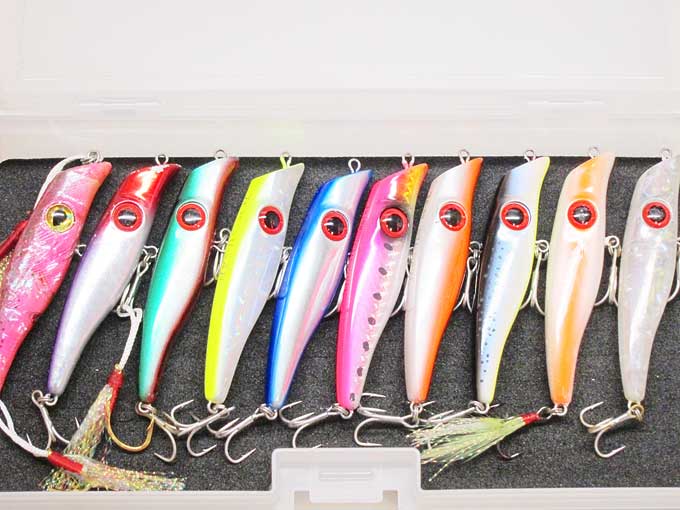 まぁ、現在のラインナップはこんな感じですが、もちろん一回の釣行で全部のカラーを投げる事はありません(笑)※全部投げたら洗うのも大変なんで…。一部、標準仕様ではございませんがご了承下さい。
