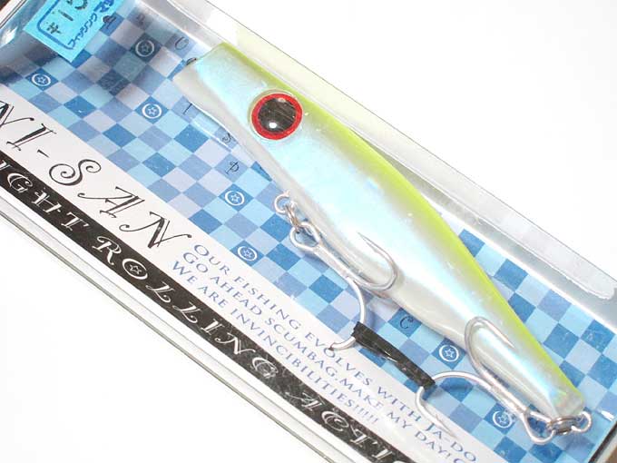 「デカイだけじゃアニキは勤まらねぇ!」ボディレングス100mmとシリーズ最大モデルながら、見ただけじゃわからないスパーリングローリングアクションを放ちながらシーバスを呼ぶ。キャスタビリティーもシリーズ最長で広く浅くサーチしてくる。意外と場所を選ばないのですが、「大場所」でこそ使って欲しいニーサンです。