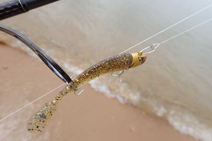 鵜が居ないタイミングを見計らって、潮目に向かってキャストを始めると、数投でココンっ!と叩くようなバイトが出るも乗らず…。その後は、アルカリシャッド部分がズレて戻ってくる状況がチラホラと続くも、魚を掛ける事が出来ず…。
