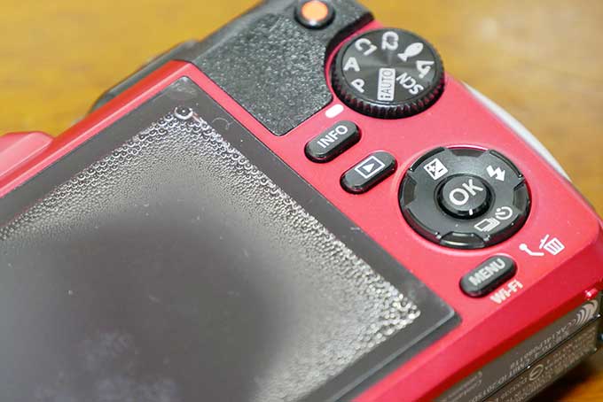 公式サイトを確認すると、背面にあるモニターのサイズは、3.0型カラー液晶となっており一般的なサイズですが、それに対してドット数は約46万ドットと、3~4世代前のコンデジを思わせる仕様。実際に使っていても、液晶の粗さは目立っています。