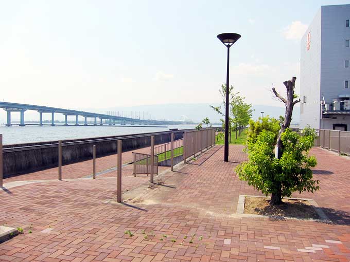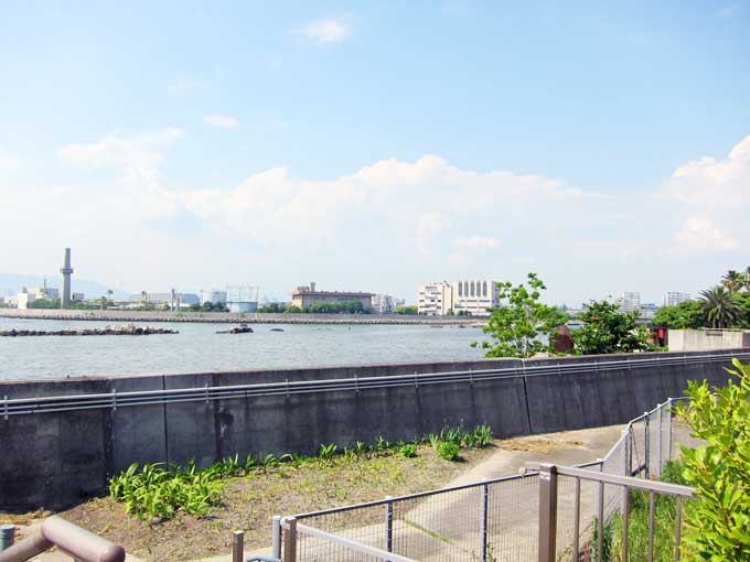 千趣会裏とのコーナー付近の足場の上です。左側がムコイチ方面・右側が鳴尾川河口になります。