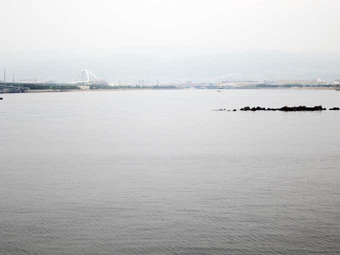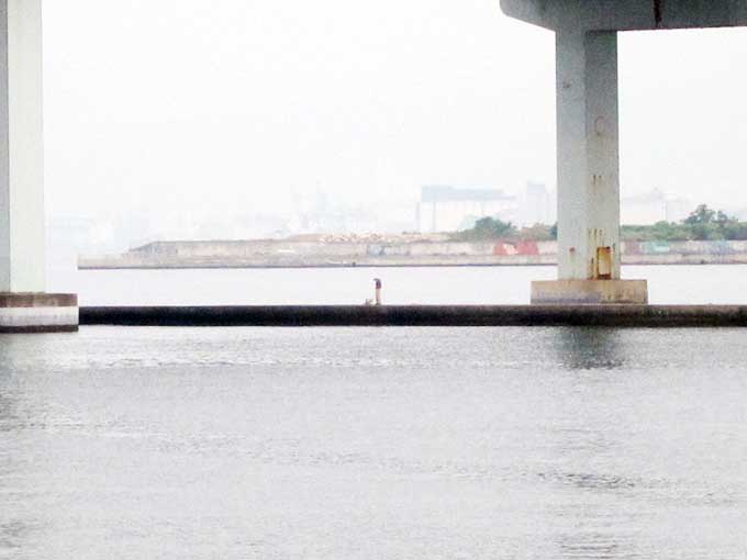 この日は鳴尾川から出船の「西野渡船」さんが、鳴尾浜と甲子園浜の間にある湾岸下の一文字(?)に釣り人を渡していました。ここなら船酔いする間もなくアっと言う間に到着です。