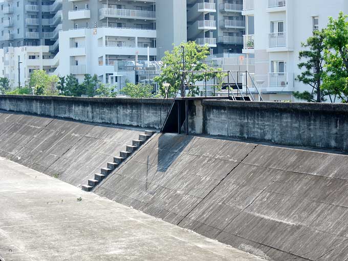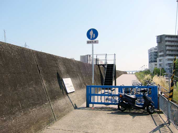 鳴尾川に向かって右側にある階段から護岸沿いにアクセス可能です。