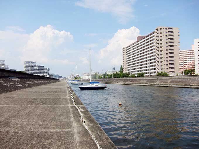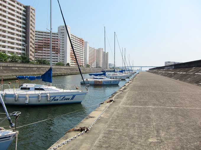 鳴尾川の根元から先端までは意外と距離があり、その間の護岸や停泊船周りはいいポイントになります。深夜でも周辺のマンションの明かりがあるので、それ程寂しくはありません。