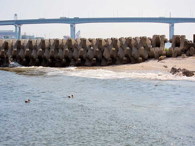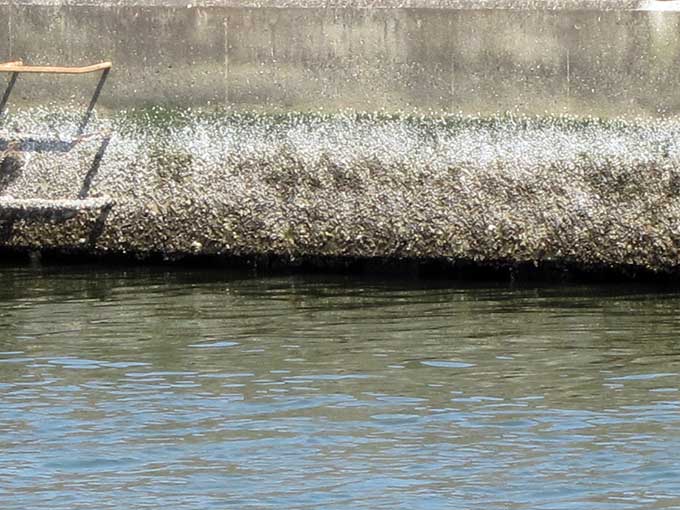 護岸近くはアミのようなプランクトンが大量に流されています。