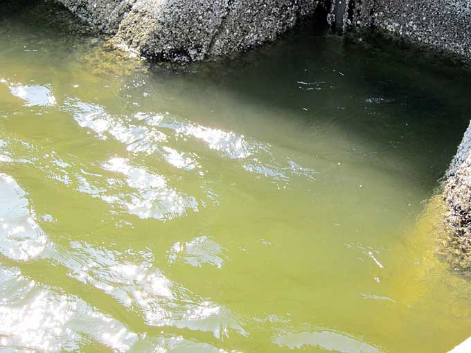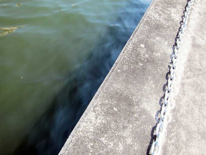 すぐ足元にも浄化センターからの流れ込みがあります。写真では分かりにくいですが、この日も大量のベイトがこの流れ込みに溜まっていました。