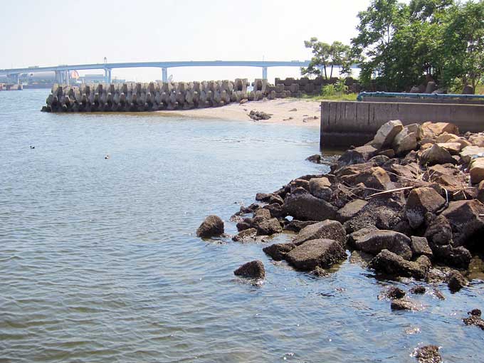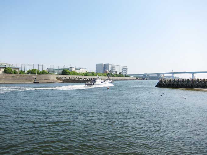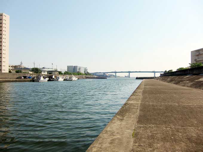 鳴尾川に関しては、この場所であっていますが、タチウオとなると少しイメージが違うように思います。この写真の対岸側の河口寄りか、もう少し沖に出た方か…。
