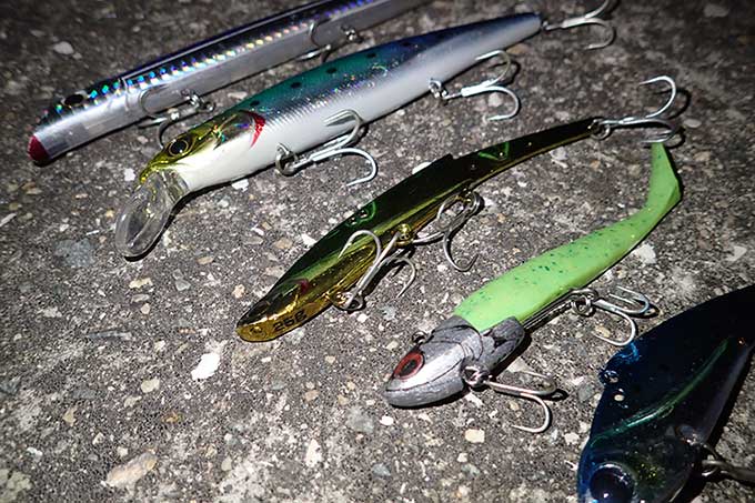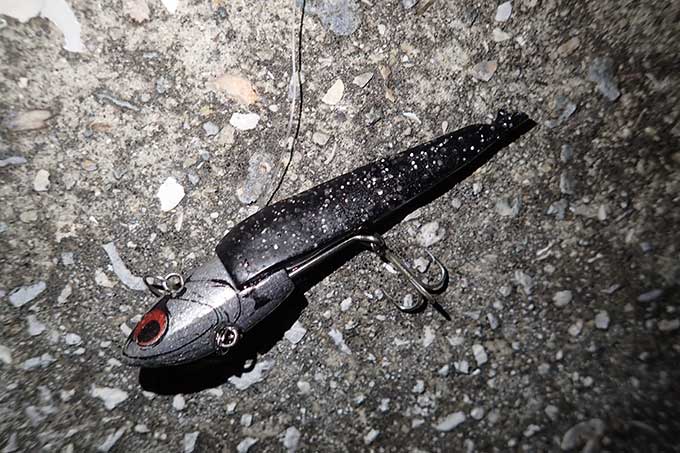 嫌な予感はしますが、マイワシを追ってボイルしているのは間違いなくシーバス。そうなってくると、飛距離は落ちるものの、数年ぶりにベイスカッドを準備。ガツンガツン当たるマイワシの下を通すように引き始めると、こちら側をハイビームで照らして戻って行く車が…。