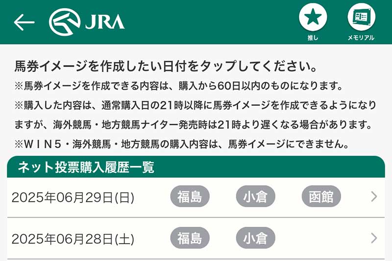 また、馬券画像を作成できるのは、“購入してから60日以内”の馬券。