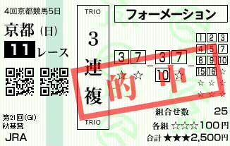 購入した馬券の画像が表示されました!!