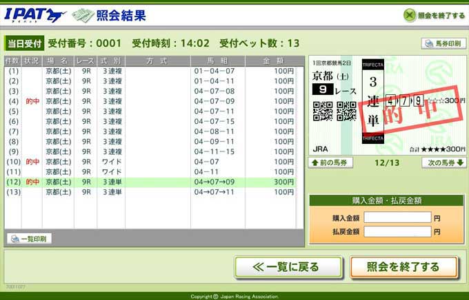 ネット購入馬券の画像を表示する手順