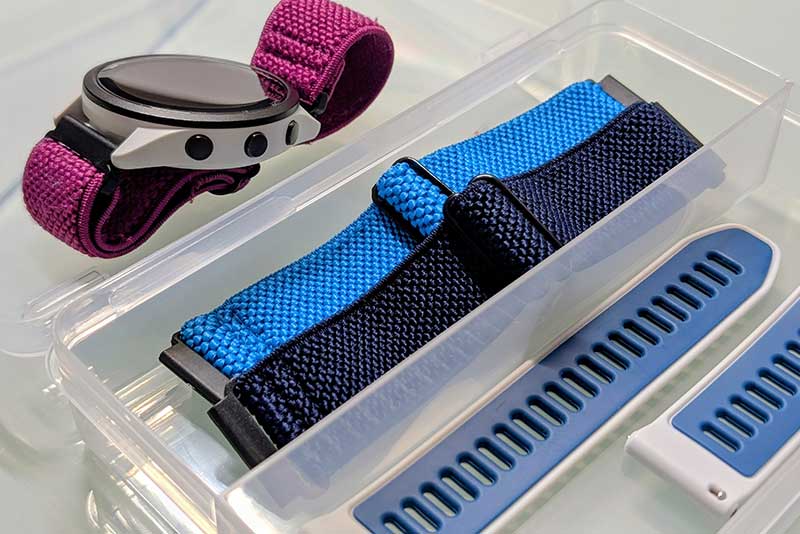 こういった替えバンドは、『Garmin 足首』『Garmin クイックリリース』というワードで出てきますが、私が買った伸縮性のあるAmazonのコレ『弾性ナイロンバンド ベルト(クイックリリース)』が、付け心地も良く、カラーも豊富で選びやすいと思います。