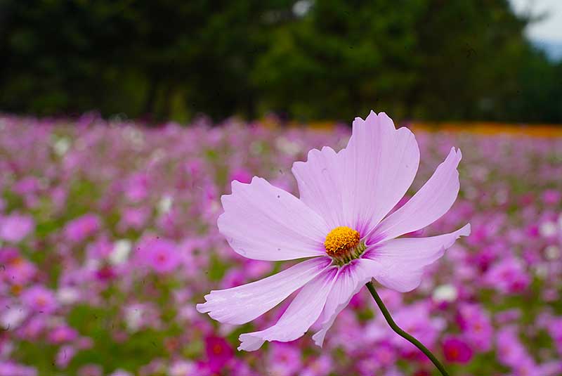 コスモス畑でやりがちなのが、畑全体をなんとなく撮ってしまうこと。 それも悪くないですが、萌える写真を撮るなら主役を決めましょう。