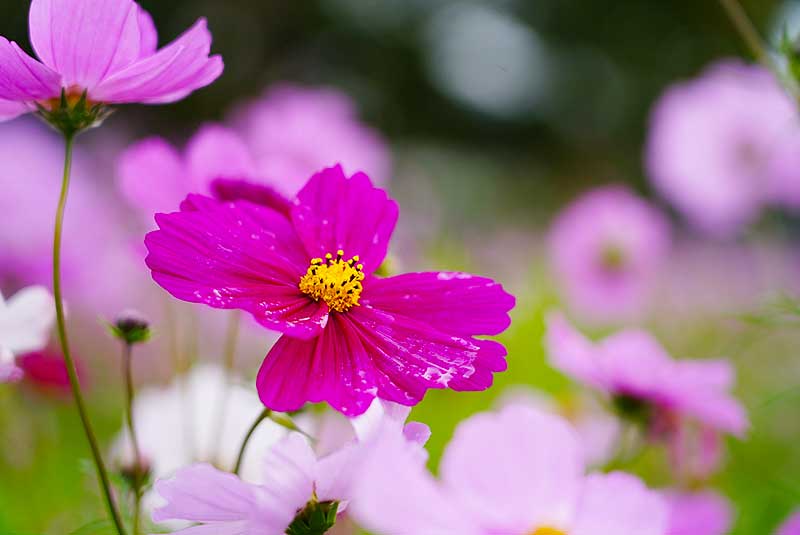 これだけで、背景のコスモス畑が「ふわり、とろり」とボケて、主役の花が際立つ幻想的な写真になります!!