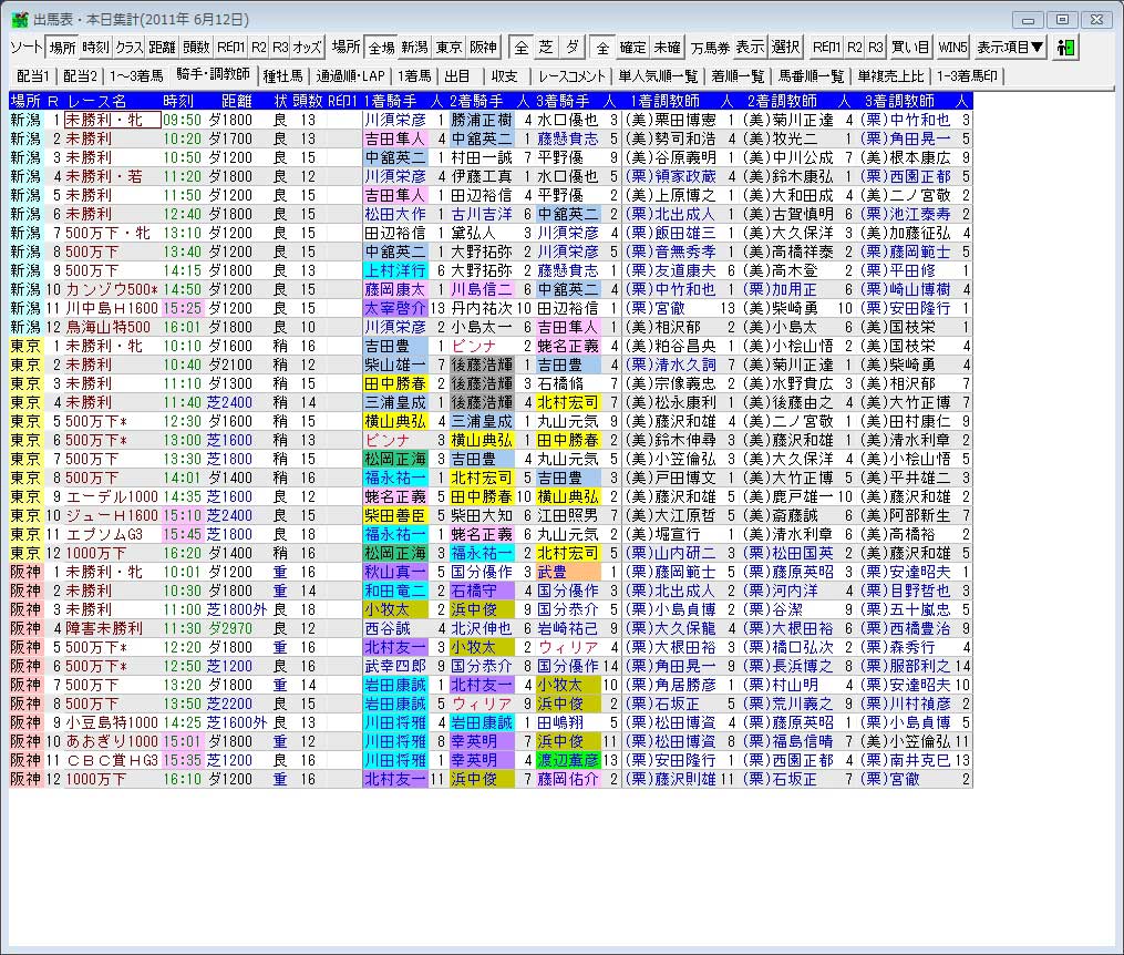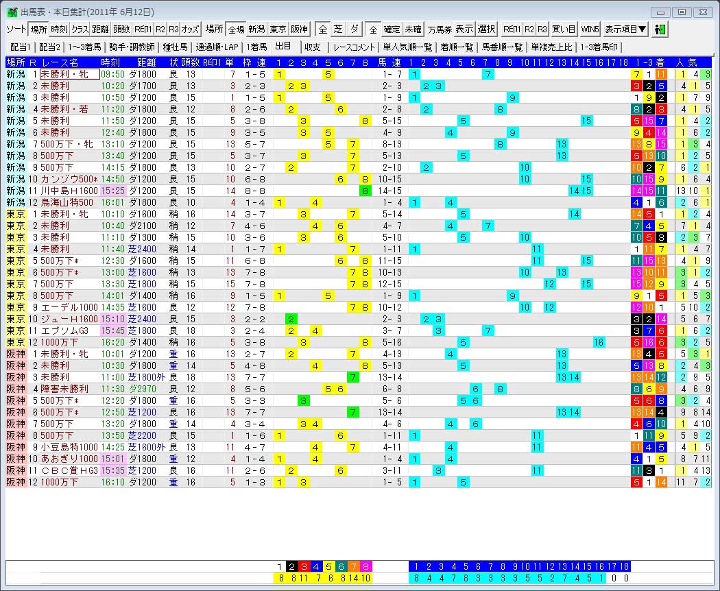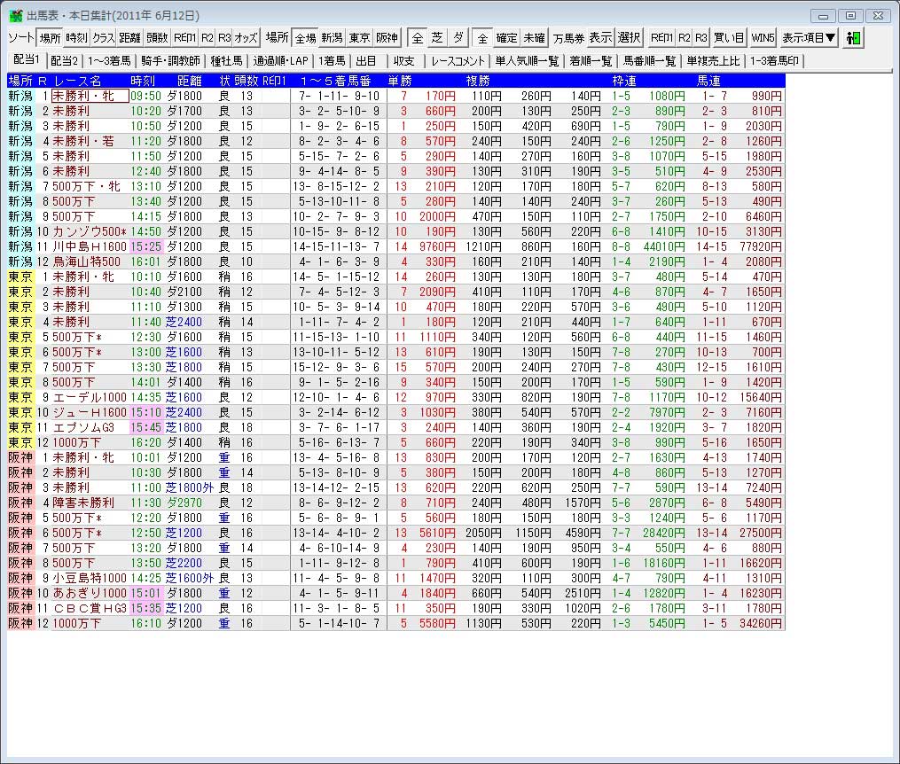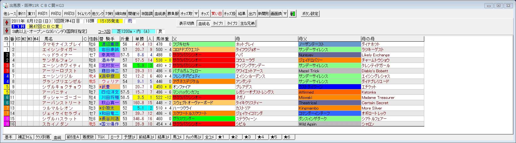 自分は、血統を予想に全く取り入れてませんが、コース毎にどの血統がよく来ているのかの統計を出して、それを参考に予想を組み立てるなんていう事も可能です。