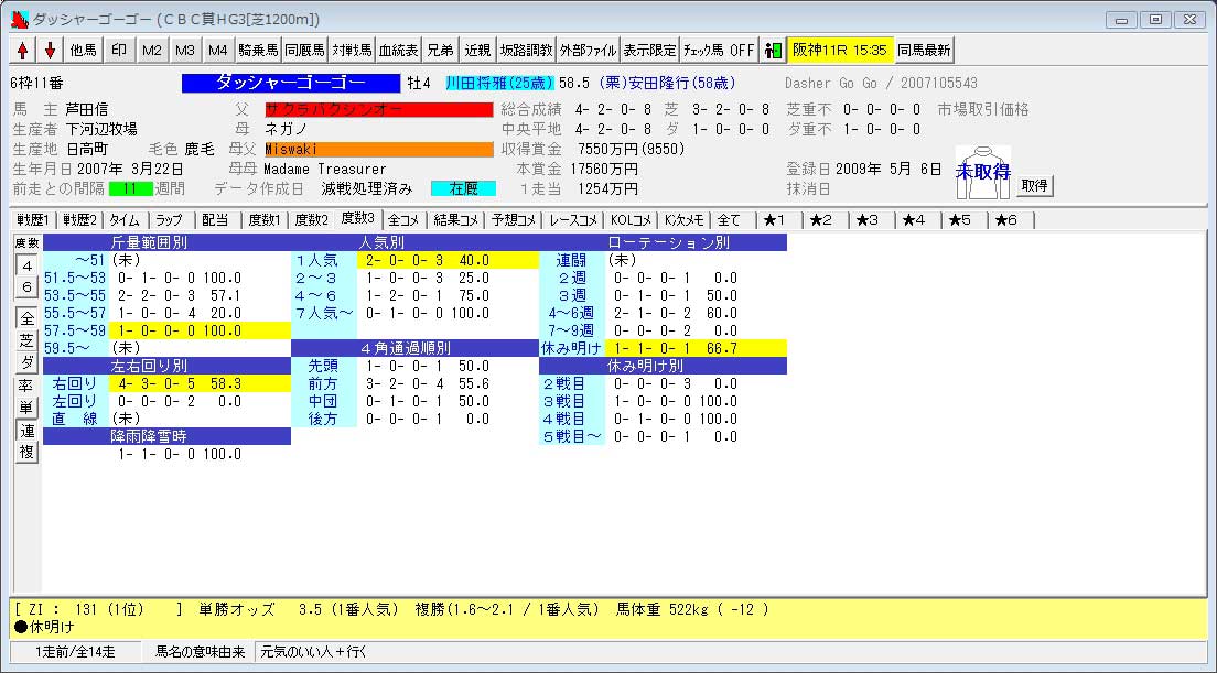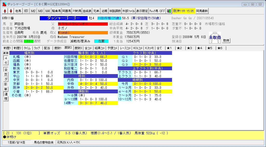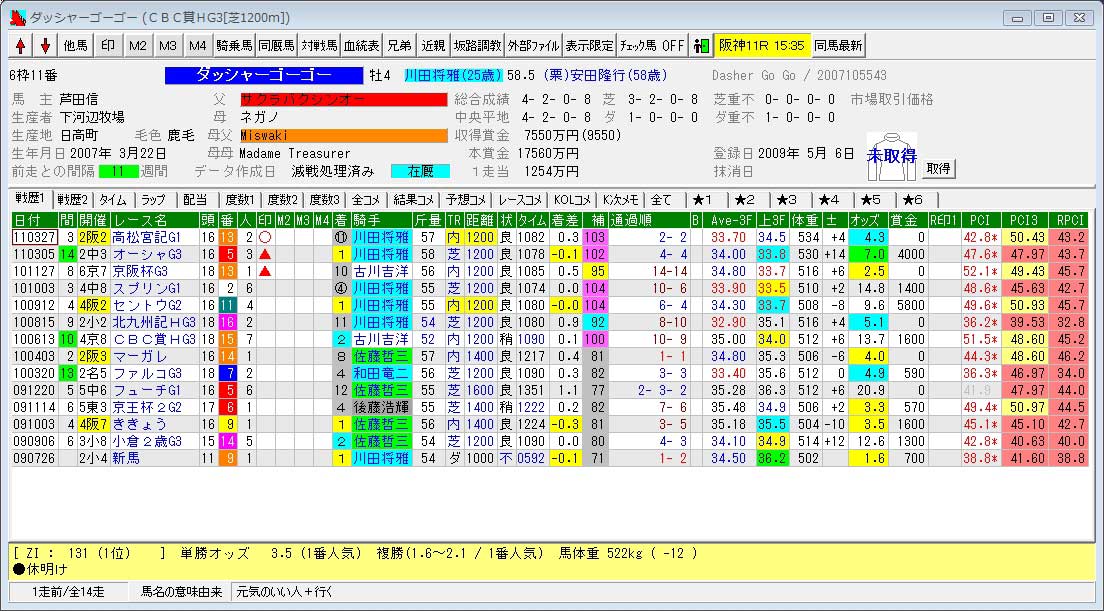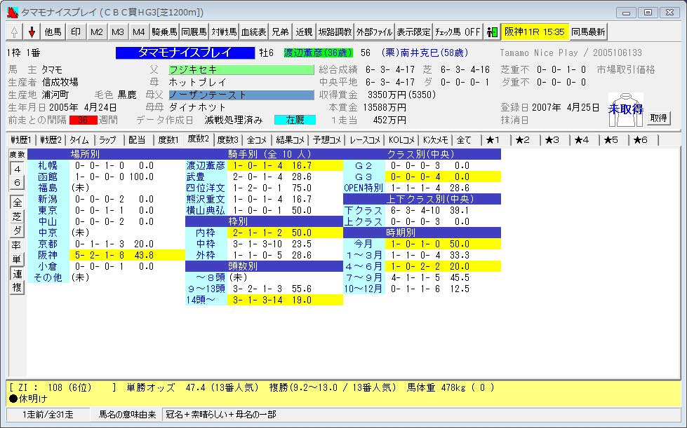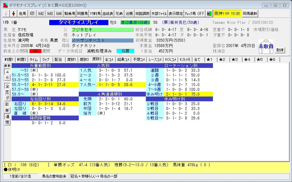 自分は、血統を予想に全く取り入れてませんが、コース毎にどの血統がよく来ているのかの統計を出して、それを参考に予想を組み立てるなんていう事も可能です。