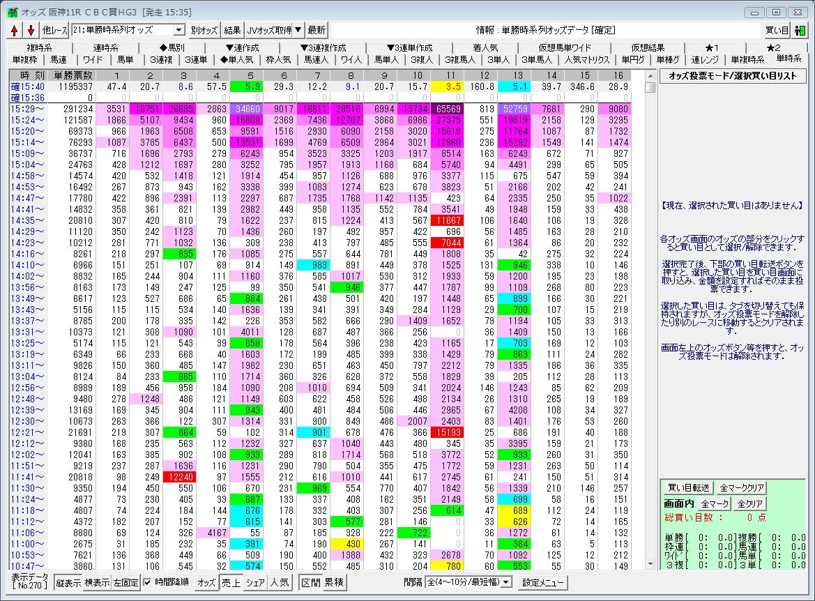この「レース一覧画面」に当日行われる全レースが記載されていて、馬券を買ったレースには印が付いたり、レース自体に「買い」や「見送り」といったマークを自分で設定する事も可能です。